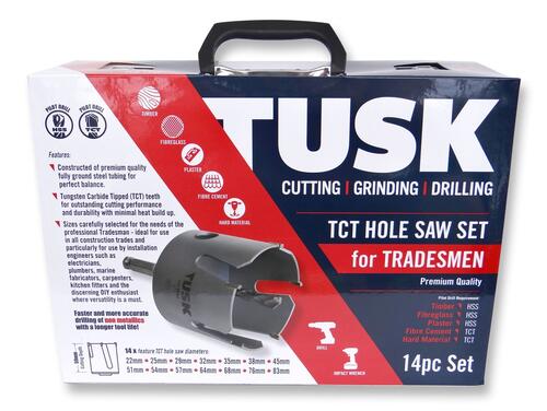 The Tusk TCT Hole Saw GP Set TCH14GP is engineered for smooth and efficient cutting through tough materials like stainless steel, cast iron, aluminum, and hard plastics. Featuring Tungsten Carbide Teeth (TCT), this high-quality hole saw offers long-lasting durability, heat resistance, and the ability to maintain sharpness through prolonged use. Perfect for professional tradespeople and DIY enthusiasts in New Zealand, it’s ideal for various drilling applications across different industries.