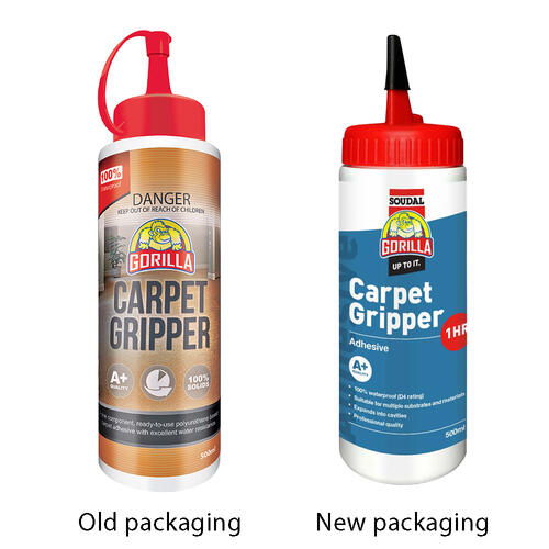The Gorilla Carpet Gripper 01493 Adhesive (500ml) is a high-performance, solvent-free adhesive designed for professional carpet installation. With a fast 10-minute cure time, this moisture-cure polyurethane adhesive provides strong, water-resistant (D4) bonding, making it ideal for demanding flooring applications. It expands as it cures to fill uneven surfaces, ensuring a secure and lasting hold.